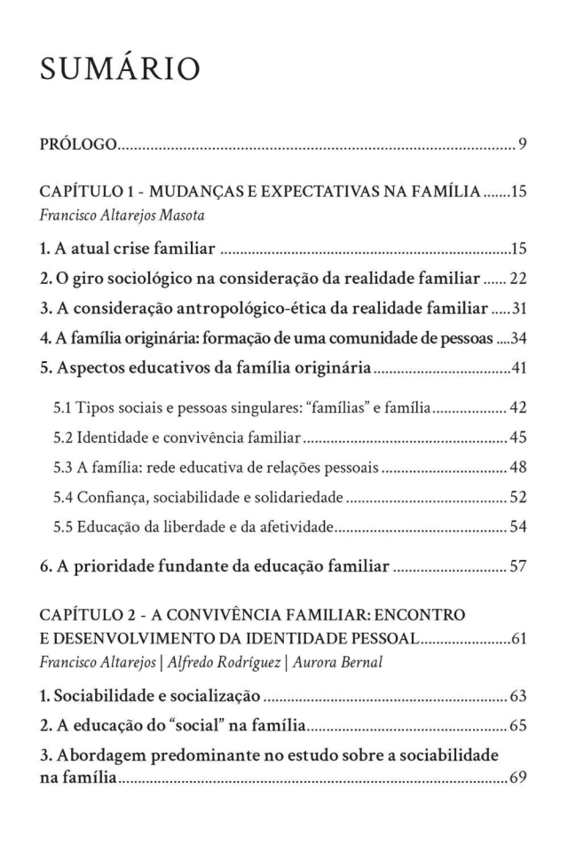 Nesse sentido, em A família como âmbito educativo o leitor verá essa entidade social por perspectivas tão distintas e complementares quanto a filosófica, a antropológica, a sociológica e a pedagógica, a fim de compreender toda a sua riqueza enquanto ambiente propício às variadas facetas da educação. O ponto de vista teórico deste livro abrange todo o arco da vida humana - desde à infância até a velhice -, versando sobre temáticas constantes ao longo da vida, embora com relevância diversa conforme a circunstância.