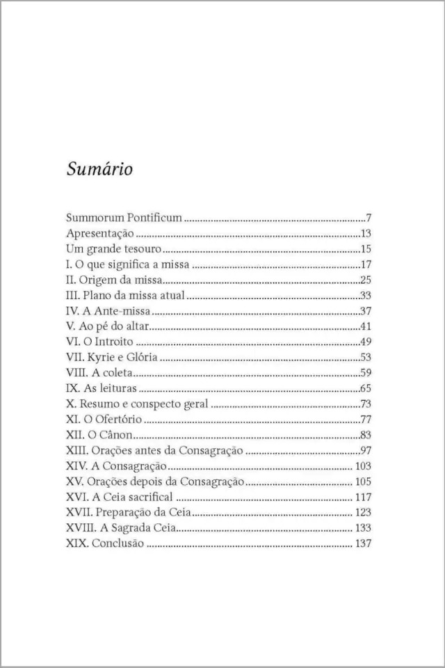 Neste clássico de Pius Parsch, importante figura do Movimento Litúrgico, o leitor encontrará uma clara explicação do significado e das partes da Santa Missa na Forma Extraordinária, também conhecida como "Missa Tridentina". A obra traz também a Carta Apostólica "Motu Proprio" Summorum Pontificum, assinada por Bento XVI. "O augusto Sacrifício do Altar é o ato fundamental do culto divino; é necessário, por isso, que ele seja a fonte, o centro da piedade cristã". Assim se expressa Pio XII em sua memorável encíclica Mediator Dei chamando a atenção de todos os fiéis para o seu principal dever e para a sua suma dignidade: a participação do "Santo Sacrifício Eucarístico, não como uma assistência passiva, negligente e distraída, mas com tal empenho e fervor que os ponha em contato íntimo com o Sumo Sacerdote, como diz o Apóstolo: Tende em vós os mesmos sentimentos que Jesus Cristo experimentou (Fp 2,5) oferecendo-se com Ele e por Ele, santificando-se com Ele".