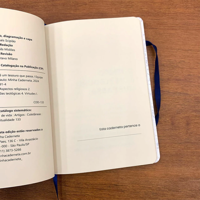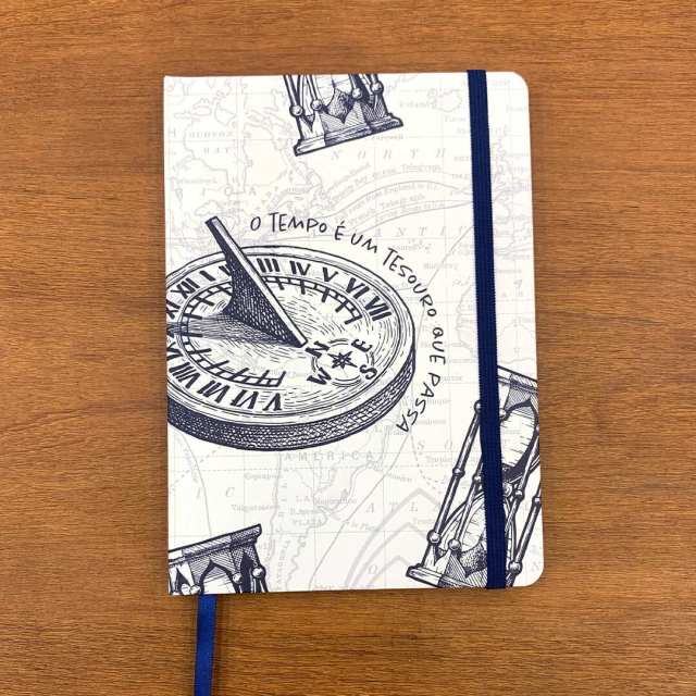 - Capa dura, elástico de fechamento e tilho de marcação;