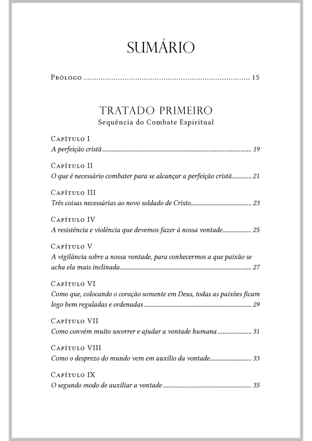 Lorenzo Scupoli, após escrever e publicar o aclamado "Combate espiritual", encontrou, em suas notas e papéis, muitos conselhos úteis e pensamentos devotos que ficaram fora do seu livro. Inflamado pelo amor às almas e a Deus, reuniu-os e publicou este volume que o leitor tem em mãos.